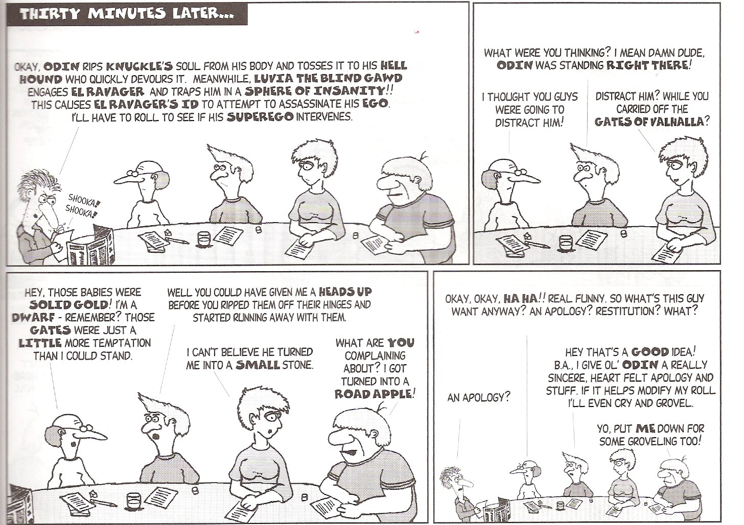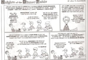 Here’s a novel idea for an awesome web comic.  Replace the Knights of the Dinner Table with the Four Horsemen.  I bet it would look something like this: