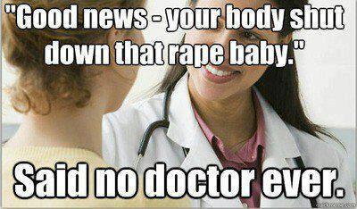 If it’s a legitimate rape, the female body has ways to try to shut that whole thing down. But let’s assume that maybe that didn’t work or something: I think there should be some punishment, but the punishment ought to be of the rapist, and not attacking the child. (source)