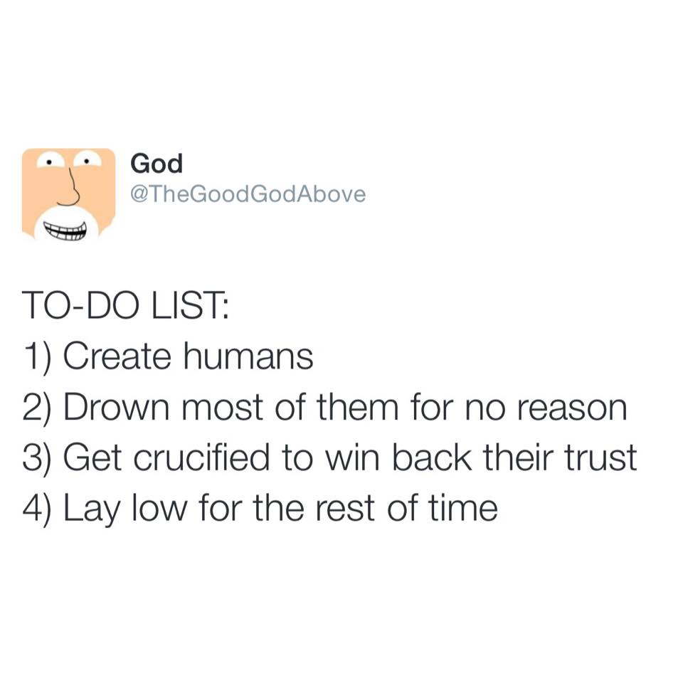 First, Appeal to Motive is a logical fallacy. However, it is relevant here because it is the bottom line reason this author gets so much wrong. The author has a man-centric viewpoint. God’s actions are meant to glorify himself, not win our approval. While that makes God sound like a selfish prick, remember that his actions are also rooted in a deep, abiding love for humanity in general, and his elect in particular. The writer of this meme pictures God as begging for our approval, while the correct picture is us begging for his forgiveness of our sins.